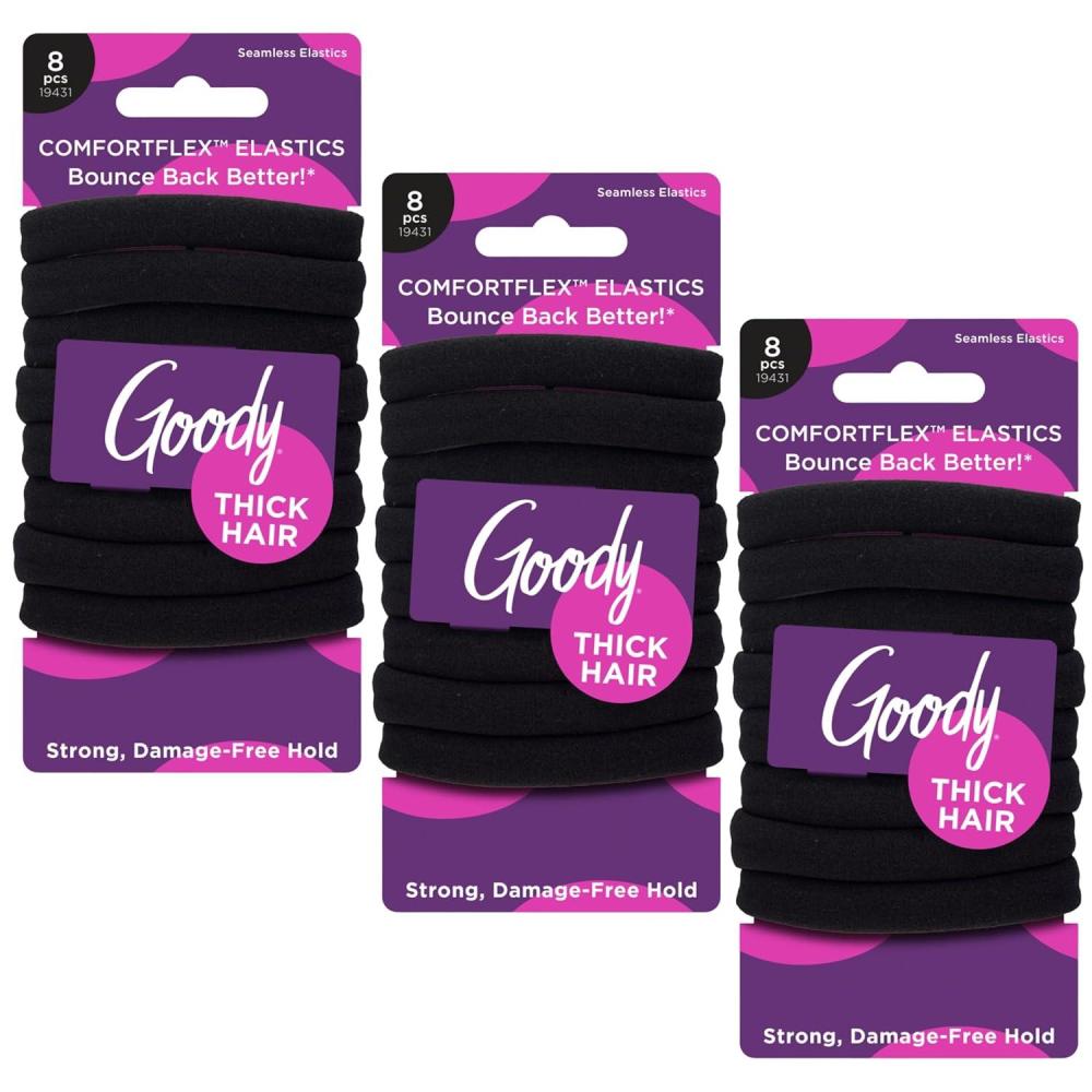 Goody ComfortFlex Black Seamless Elastics, Ouchless® Hold, No-Slip Grip Hair Ties, No Snag, For Thick Hair, 24ct