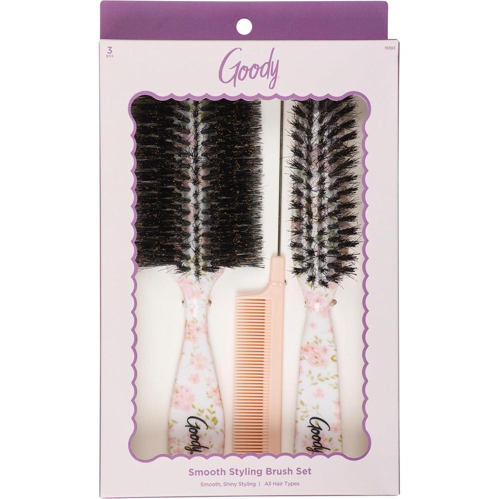 Goody Luxe Smooth Styling Brush Set, Boar Bristle Brushes for Shine, For All Hair Types, 3 ct