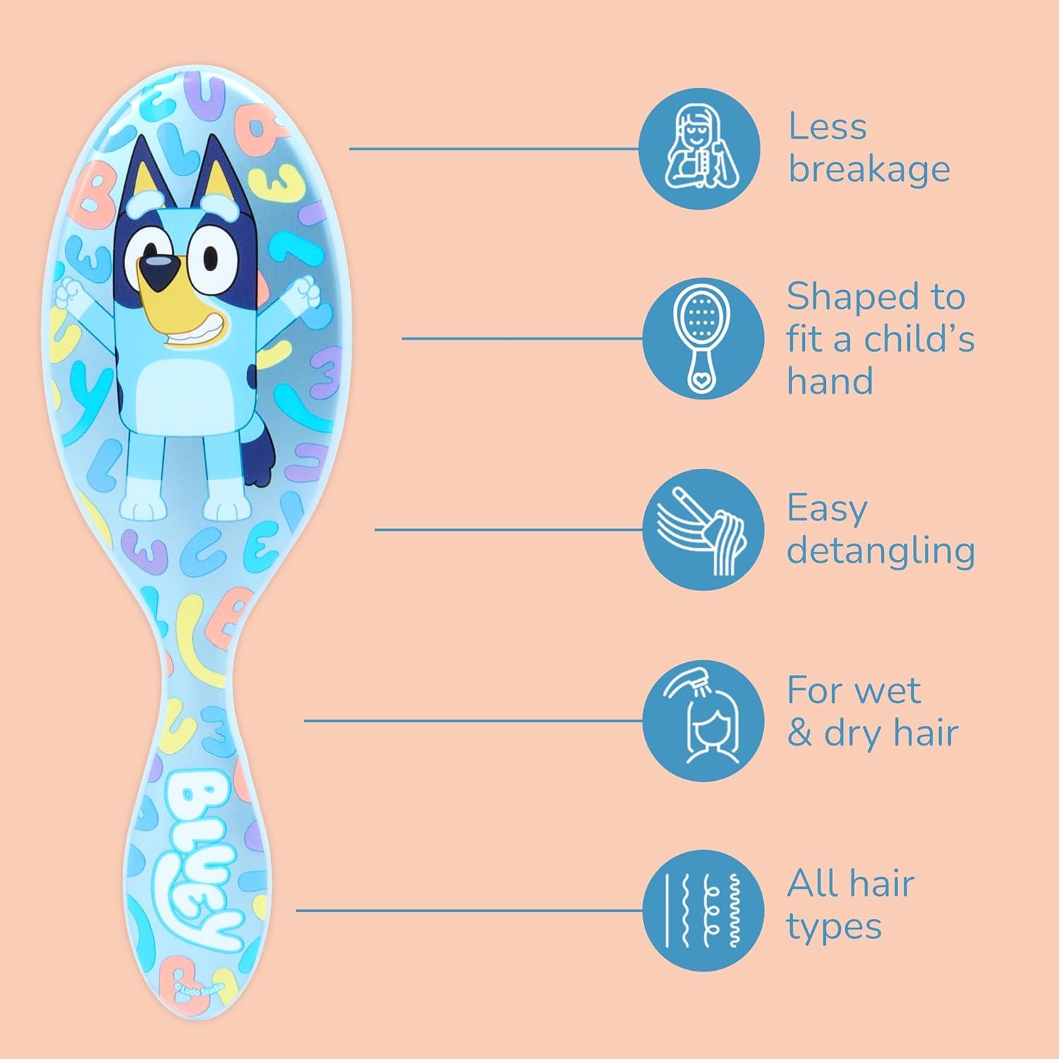 Wet Brush Bluey Kids Midi Hair Brush, Limited Edition, Orange + Goody x Bluey & Bingo Multicolor Bow Barrettes 3ct + Multicolor Hair Ponytailers in Bluey Character Pouch 10ct