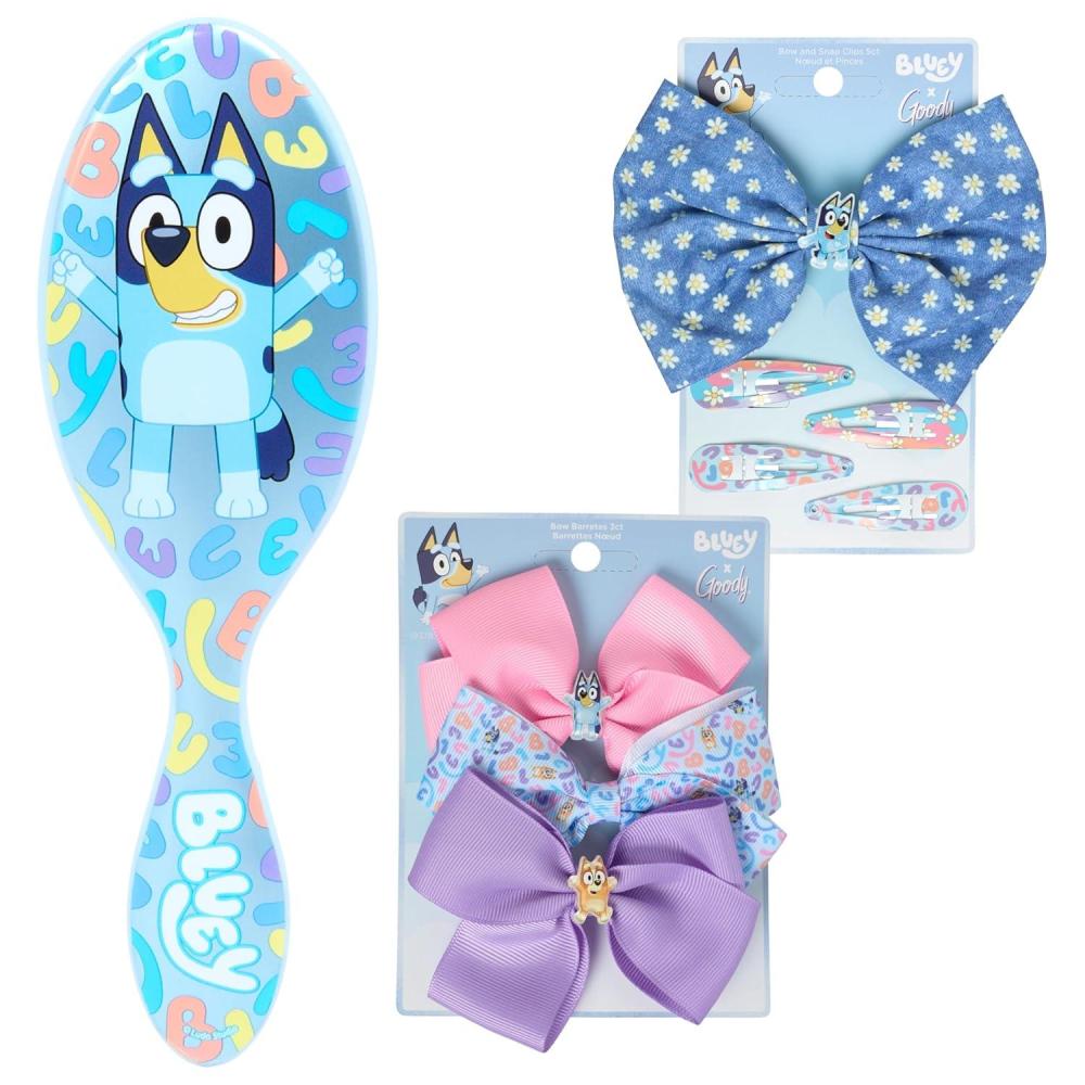 imageWet Brush Bluey Kids Midi Hair Brush Limited Edition Orange  Goody x Bluey Multicolor Floral Bow Barrette and Snap Clips 5ct  Multicolor Bow Barrettes 3ct Blue Pink amp Purple
